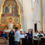 Po wakacjach w 2024 roku zdecydowałem się wprowadzić regularne, cotygodniowe próby chóru. Na początku września zostało ogłoszone pierwsze spotkanie dotychczasowych chórzystów, jak i nowych osób, które chciałyby dołączyć. Na spotkaniu, które odbyło się w niedzielę 8 września 2025 roku po Mszy Świętej o godz. 10:30, pojawiło się prawie 30 osób. Wspólnie ustaliliśmy, że będziemy spotykać się w każdy czwartek o godz. 19:00 – i tak jest do dziś. Mamy również swoją grupę na WhatsApp’ie, gdzie wysyłam wszystkim nuty i nagrania poszczególnych partii.