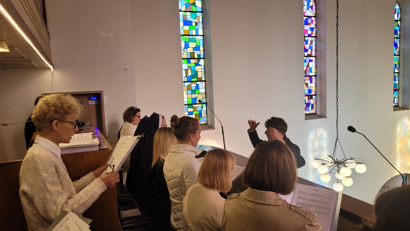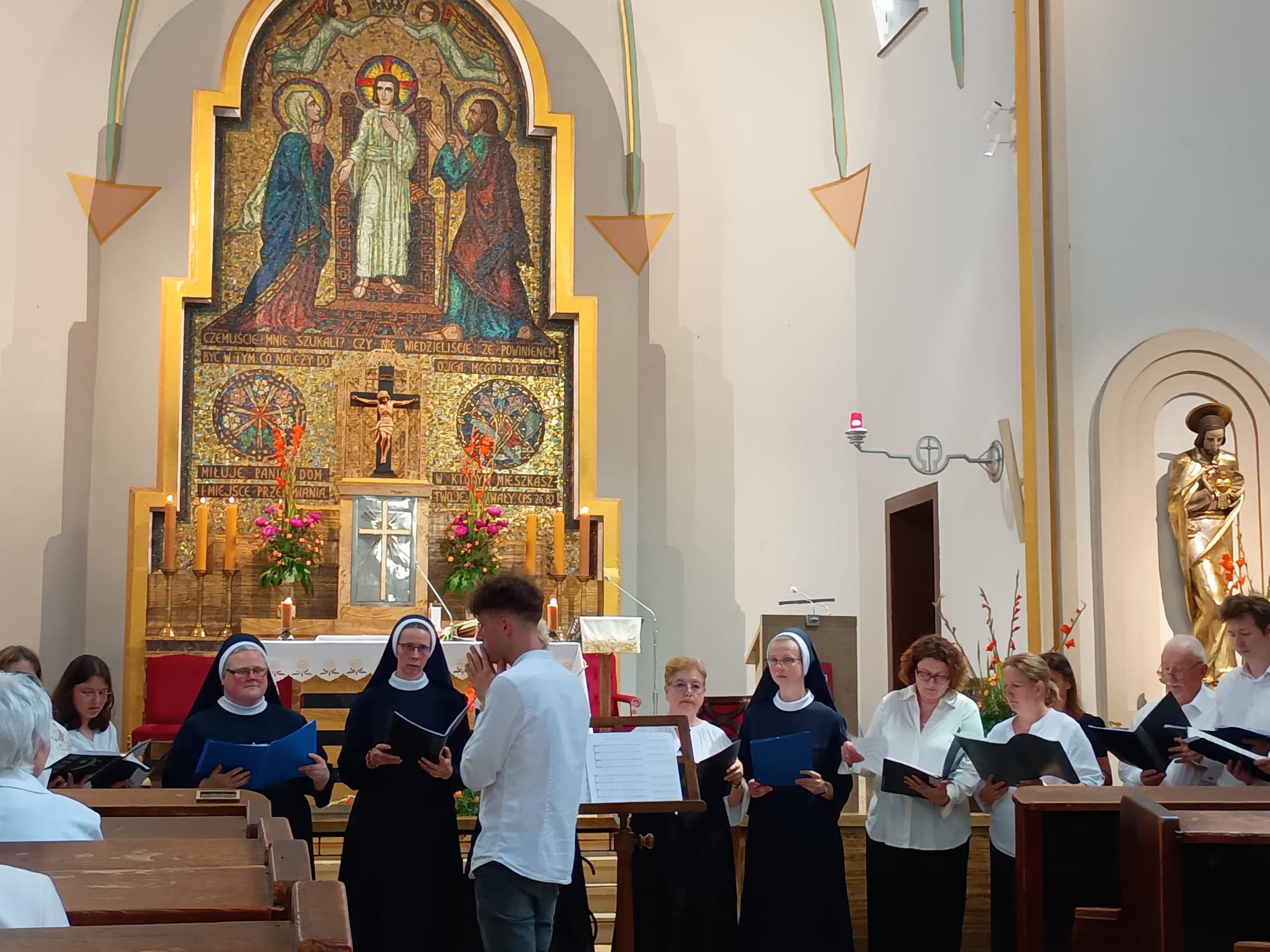 Po wakacjach w 2024 roku zdecydowałem się wprowadzić regularne, cotygodniowe próby chóru. Na początku września zostało ogłoszone pierwsze spotkanie dotychczasowych chórzystów, jak i nowych osób, które chciałyby dołączyć. Na spotkaniu, które odbyło się w niedzielę 8 września 2025 roku po Mszy Świętej o godz. 10:30, pojawiło się prawie 30 osób. Wspólnie ustaliliśmy, że będziemy spotykać się w każdy czwartek o godz. 19:00 – i tak jest do dziś. Mamy również swoją grupę na WhatsApp’ie, gdzie wysyłam wszystkim nuty i nagrania poszczególnych partii.